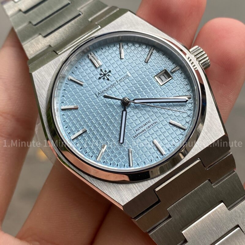 Chất liệu cấu thành nên Alexander Ferros 5052S/13 cũng được đầu tư: vỏ đồng hồ làm từ thép không gỉ 316L, mạ bạc để giữ sắc sáng lâu dài. Đây là vật liệu quen thuộc trong ngành chế tác đồng hồ cao cấp, giúp chống ăn mòn và chịu lực tốt. Alexander Ferros 5052S/13 có kích thước 38mm, phù hợp với cổ tay nam giới châu Á, mang lại sự cân đối và thoải mái khi đeo.