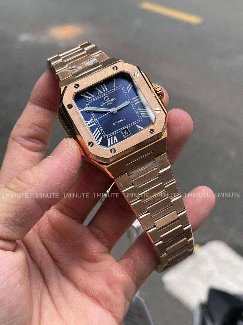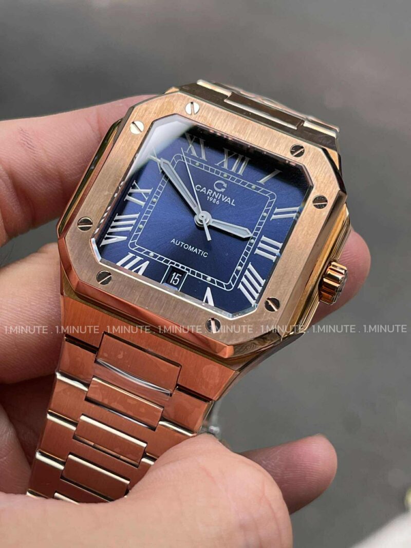 Điểm gây ấn tượng mạnh đầu tiên của Carnival 8169G-VH-X chính là kiểu dáng mặt vuông – thiết kế hiếm gặp nhưng cực kỳ cá tính. Khác với sự mềm mại của mặt tròn, mặt vuông mang đến cảm giác rõ ràng, dứt khoát và nam tính, rất phù hợp với những người yêu thích sự chỉn chu và tối giản nhưng vẫn khác biệt.