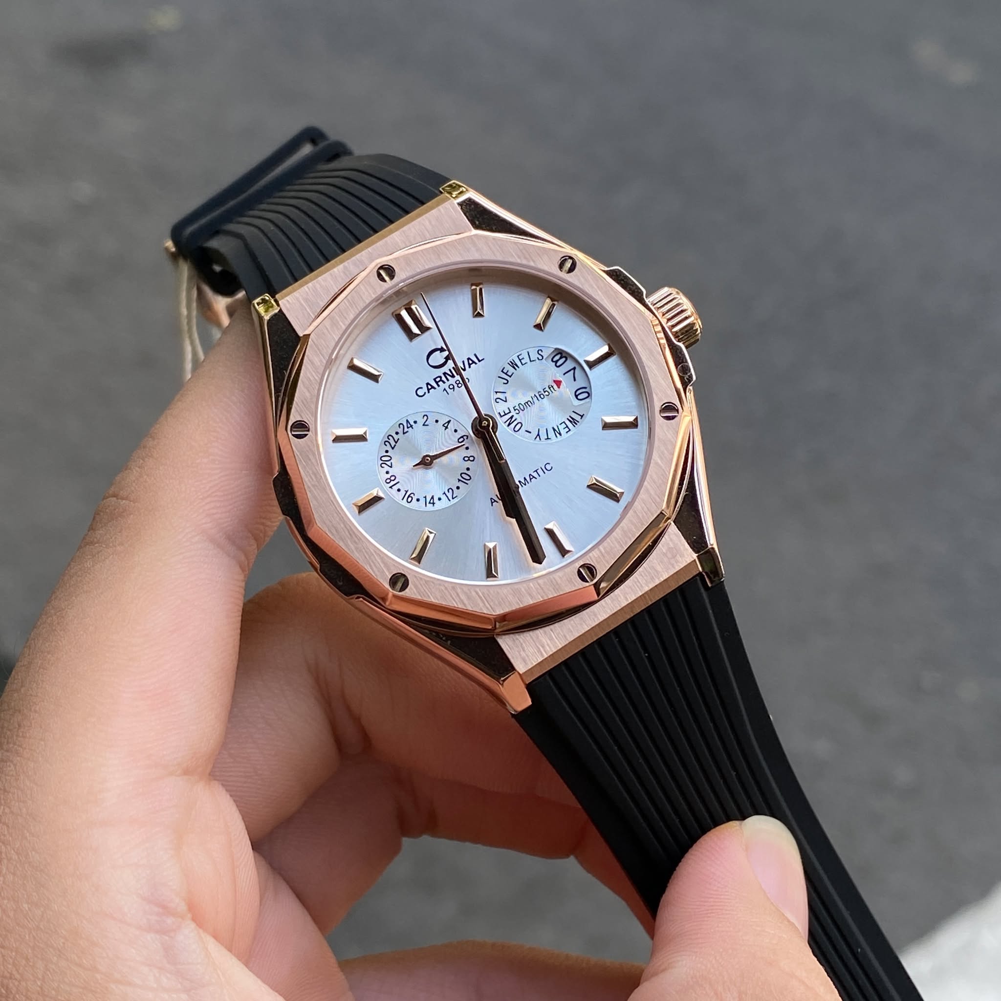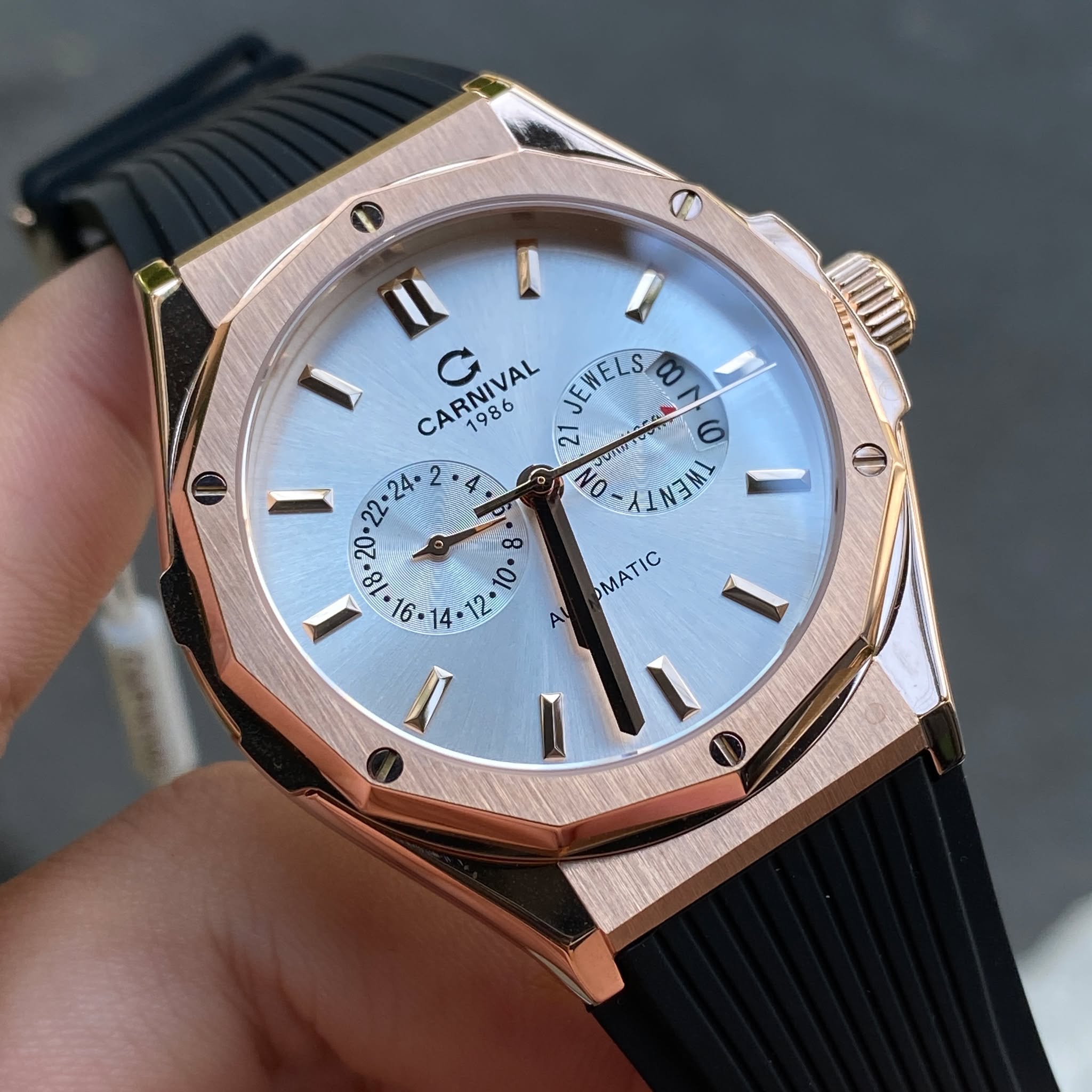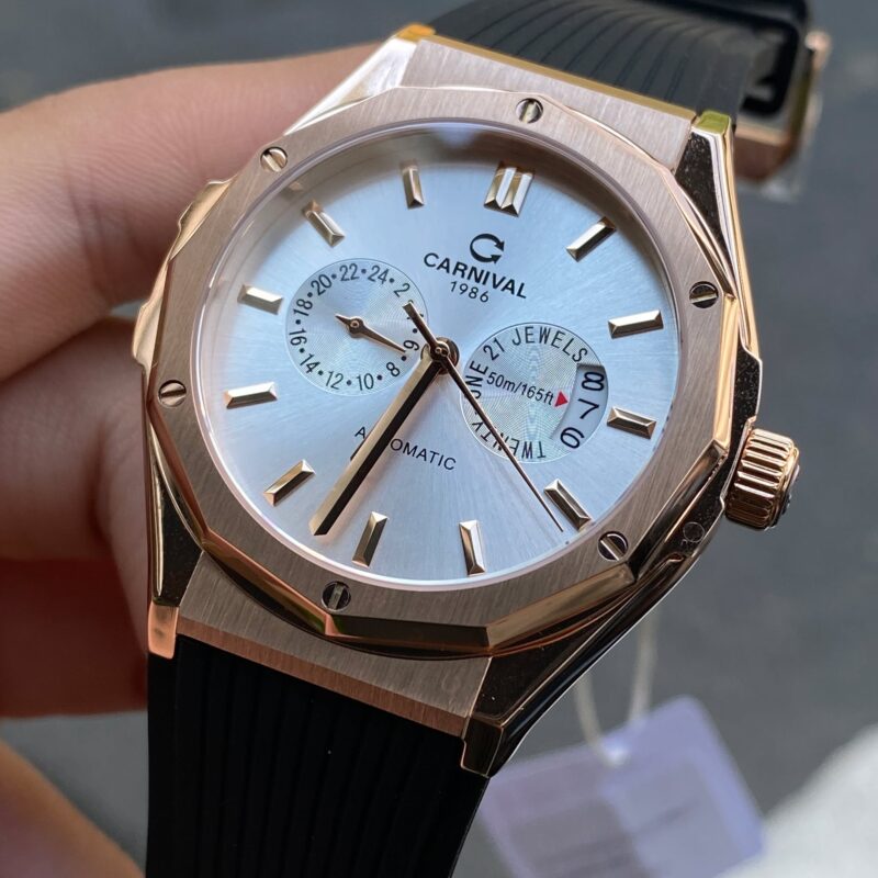 Trong phân khúc đồng hồ cơ tự động tầm trung, Carnival 8188G-VH-DCS-T là một cái tên đáng chú ý nhờ sự kết hợp hài hòa giữa thiết kế mạnh mẽ và chất lượng hoàn thiện đáng kinh ngạc. Mẫu đồng hồ này không chỉ đáp ứng nhu cầu về thời trang mà còn mang đến trải nghiệm sử dụng bền bỉ, ổn định trong thời gian dài.