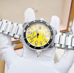 Chiếc đồng hồ có đường kính 43 mm và độ dày khoảng 11–11.7 mm, rất phù hợp với cổ tay nam giới. Vỏ và dây là thép không gỉ 316L, kiểu mắt dây chắc chắn với khóa gập an toàn.