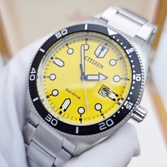 Ngay từ cái nhìn đầu tiên, mặt số vàng (yellow dial) của Citizen AW1760-81Z cuốn hút ánh nhìn, kết hợp với viền bezel đen và dây thép bạc tạo nên phong cách trẻ trung đầy cá tính. Thiết kế kim và cọc số rõ ràng cùng cửa sổ lịch ngày tại vị trí 3 giờ giúp dễ quan sát và hài hòa tổng thể.