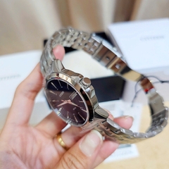 Đồng hồ Carnival 8131G-CH-N demi nâu sang trọng và đẳng cấp, máy cơ mượt mà và bền bỉ, mặt kính sapphire, kim cột mốc số đính đá sang chảnh, dây đeo thép không gỉ chắc chắn, chống nước đi mưa rửa tay thoải mái.
