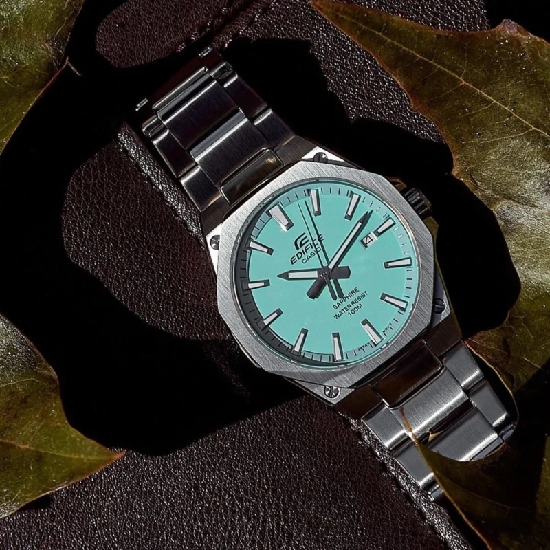 Điều đặc biệt là mặt số Tiffany Blue hiếm khi xuất hiện trong đồng hồ tầm trung. Đây là màu thường thấy ở những thương hiệu cao cấp, do đó việc sở hữu một phiên bản Edifice với sắc xanh ngọc này mang lại cảm giác “luxury” ở mức giá hợp lý.