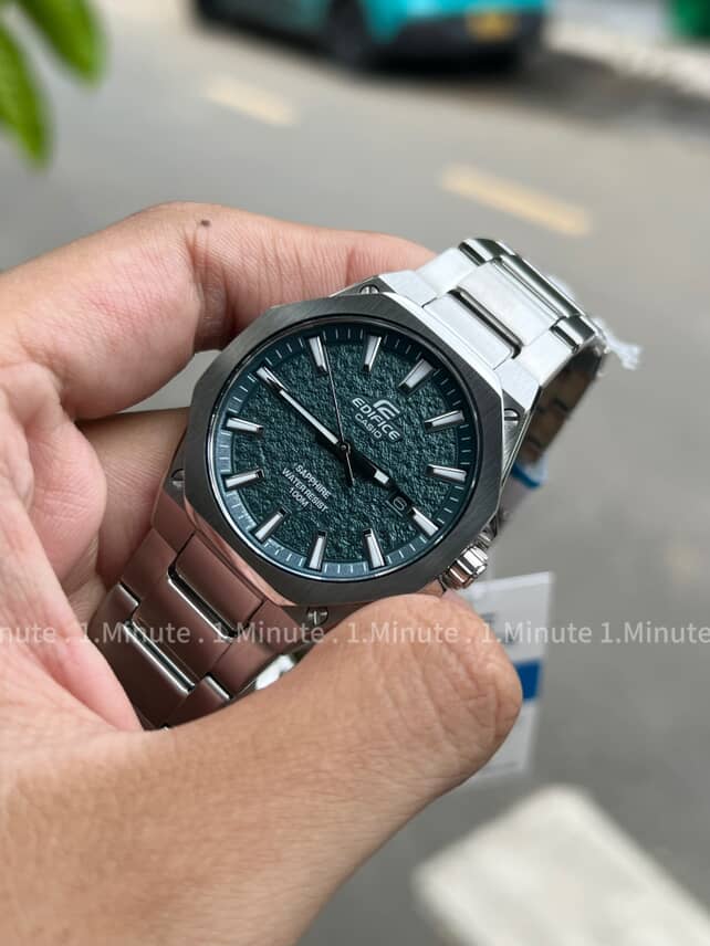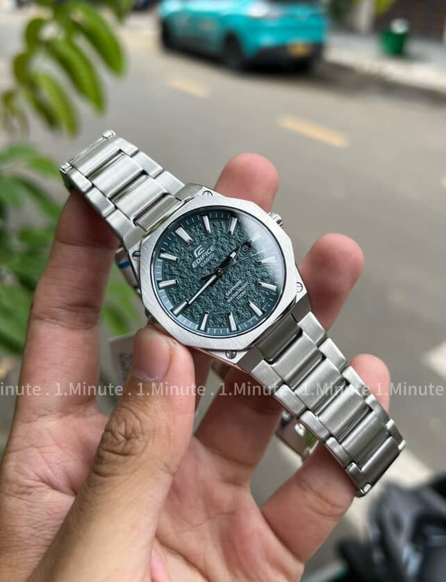 Casio EFR-S108DE-3AV thuộc dòng Edifice, nổi bật với mặt số xanh rêu tinh tế kết hợp kim và cọc số phủ phản quang, dễ đọc trong mọi điều kiện ánh sáng. Vỏ và dây thép không gỉ bền bỉ, mang lại cảm giác chắc chắn và sang trọng.