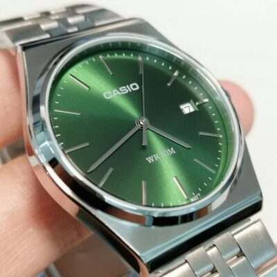 3,000,000₫Giá gốc là: 3,000,000₫.1,700,000₫Giá hiện tại là: 1,700,000₫.Casio MTP-B145D-3A sở hữu thiết kế trẻ trung với mặt số màu xanh rêu cá tính, nổi bật cùng bộ kim và cọc số vàng hồng sang trọng. Dây và vỏ thép không gỉ chắc chắn, kính khoáng cứng chống trầy tốt, chống nước 50m tiện dụng. Mẫu đồng hồ lý tưởng cho nam giới ưa phong cách hiện đại, thanh lịch nhưng vẫn cá tính.