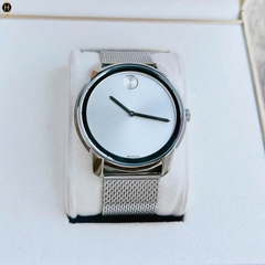 Phần vỏ và dây đeo của Movado Quartz 3600260 được làm từ thép không gỉ 316L mạ bạc sáng bóng, vừa bền bỉ vừa tạo cảm giác cao cấp. Dây đeo dạng lưới thép (mesh bracelet) ôm sát cổ tay, có thể điều chỉnh kích thước linh hoạt, không cần cắt mắt như dây kim loại truyền thống. Dây mesh tạo sự thông thoáng, nhẹ và dễ phối hợp với các loại trang phục từ sơ mi, blazer cho đến áo polo hoặc thậm chí là đồ smart-casual.