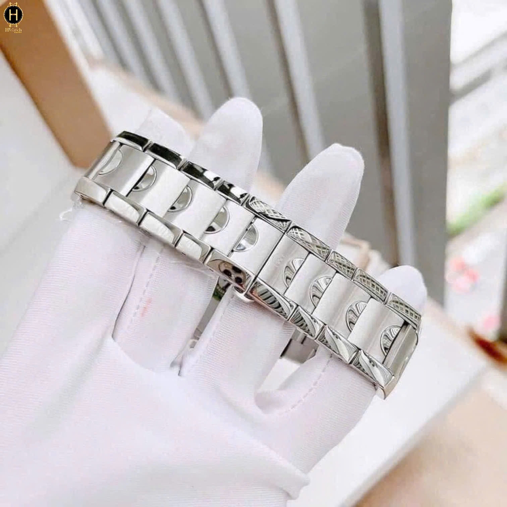 Phần vỏ của đồng hồ được chế tác từ thép không gỉ, được đánh bóng toàn bộ bề mặt để tạo hiệu ứng phản chiếu ánh sáng đầy sang trọng. Kích thước mặt 39mm, một lựa chọn lý tưởng cho cả cổ tay nam trung bình đến nhỏ – phù hợp với phong cách cổ điển mà vẫn rất hợp thời.