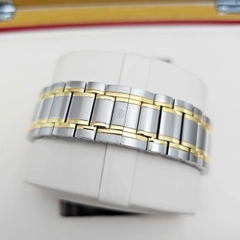 Dây đồng hồ là loại thép không gỉ 3 liên kết, hoàn thiện bề mặt bóng tinh tế, đi theo tông màu bạc đồng bộ với vỏ. Thiết kế dây mang lại sự chắc chắn, ôm tay và giữ cho tổng thể luôn gọn gàng, lịch sự. Khóa bấm gập đôi tiện dụng, giúp tháo lắp nhanh mà vẫn chắc chắn khi sử dụng hàng ngày.