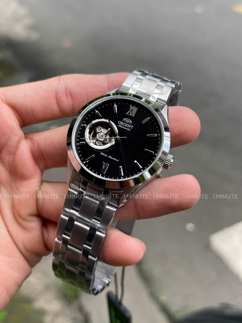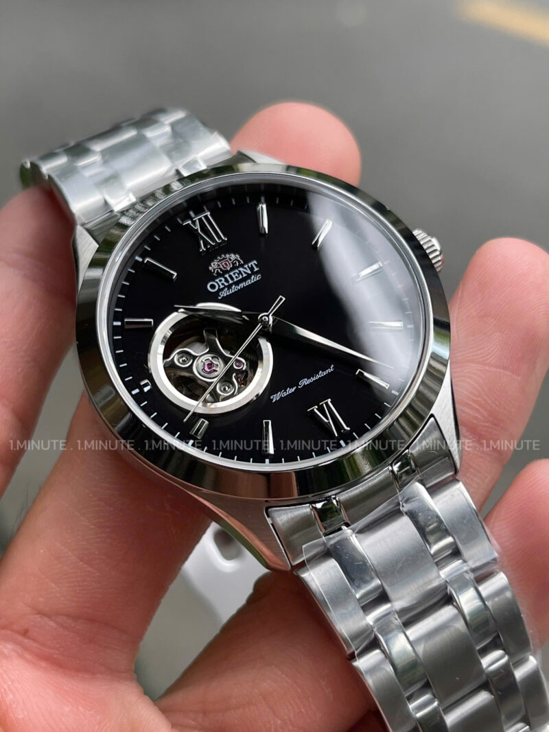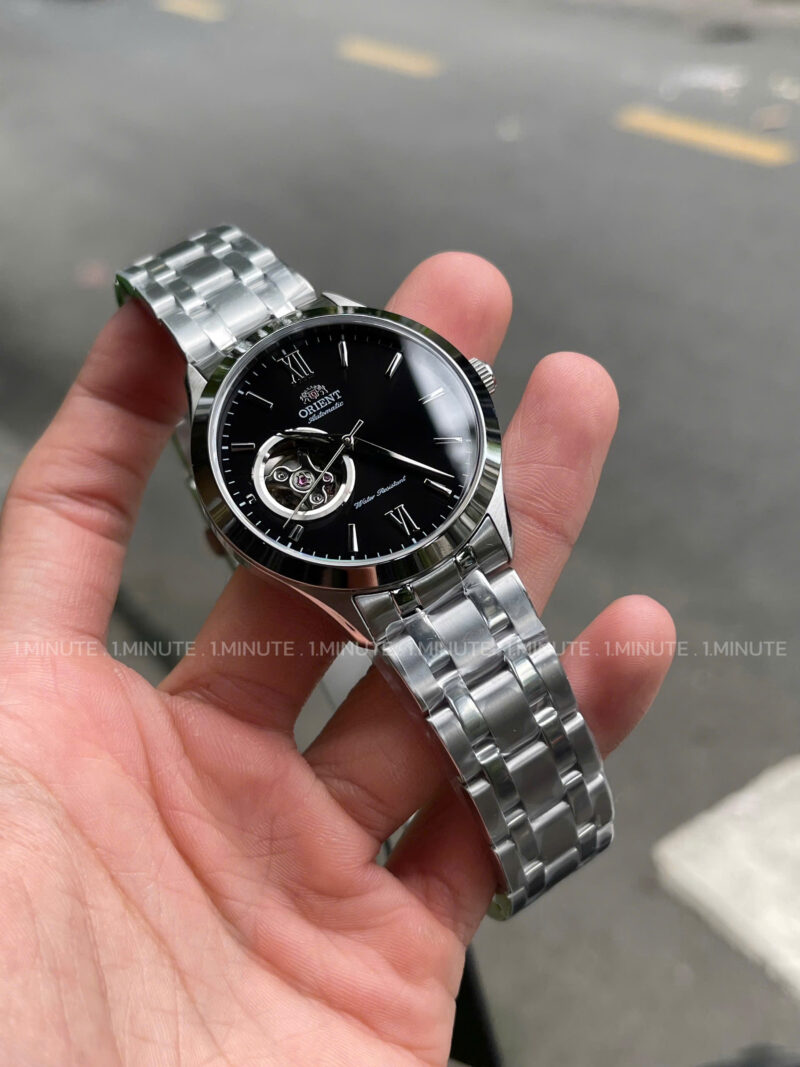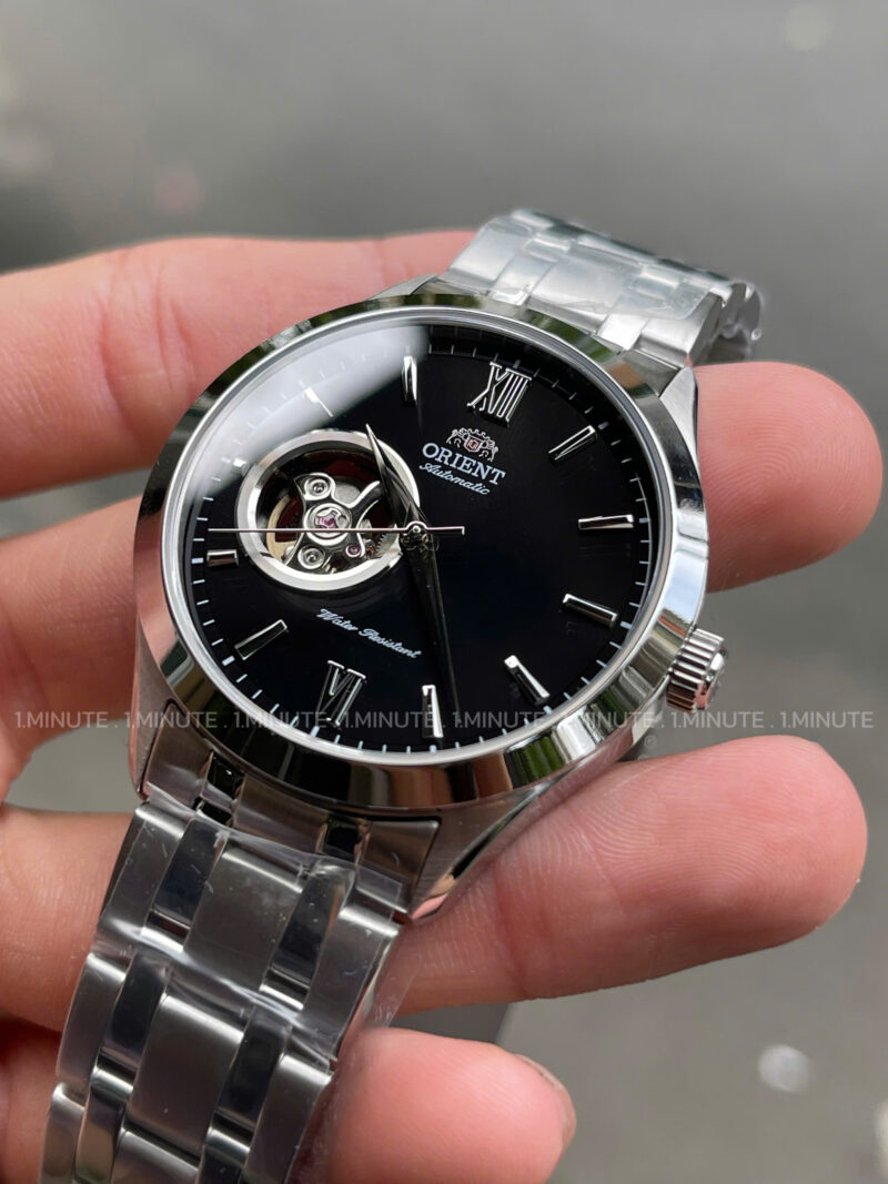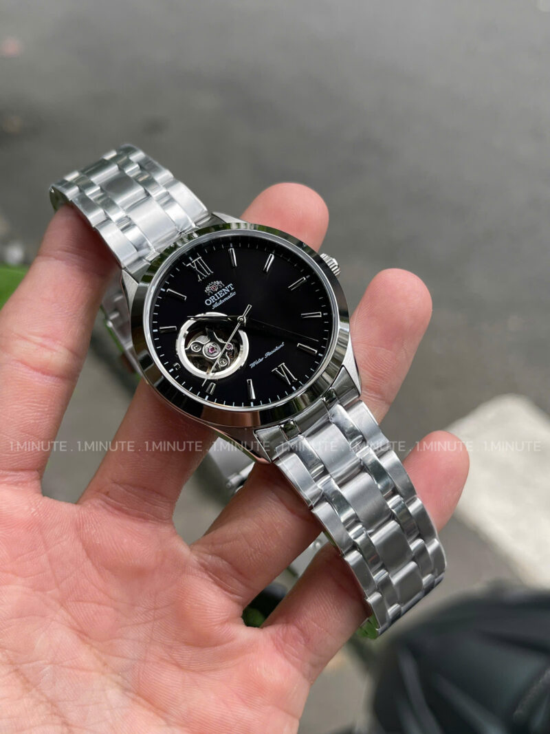 Bên trong, mẫu đồng hồ sử dụng bộ máy Caliber F6T22 do Orient sản xuất tại Nhật Bản – một bộ máy cơ tự động 22 chân kính, dao động 21.600 vph, hỗ trợ lên cót tay (manual winding) và dừng kim giây khi chỉnh giờ (hacking), tăng độ chính xác khi sử dụng.
