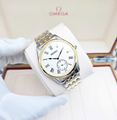 Mặt số đồng hồ được phủ tông trắng tinh tế, điểm nhấn là các cọc số La Mã đậm chất cổ điển, kết hợp cùng bộ kim Dauphine sắc nét. Viền bezel mạ vàng hồng tạo nên sự sang trọng và hài hòa, đồng thời nổi bật khi kết hợp với dây da nâu cao cấp.
