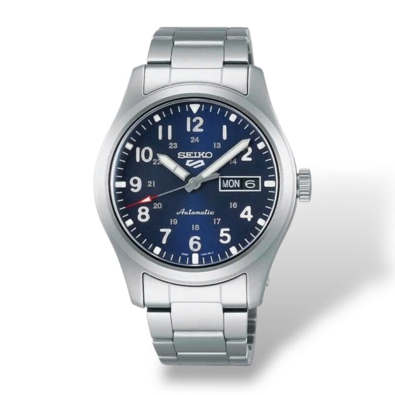 Seiko 5 Sports SRPG29K1 sở hữu thiết kế thể thao cổ điển với mặt số xanh navy, vỏ thép không gỉ 39.4mm, kính Hardlex, bộ máy Automatic 4R36 trữ cót 41 giờ, lịch ngày-thứ và khả năng chống nước 100m. Đây là mẫu đồng hồ bền bỉ, tinh tế, phù hợp cả đi làm lẫn dạo phố.