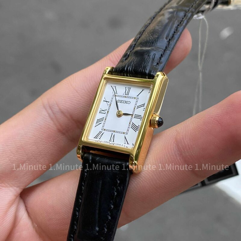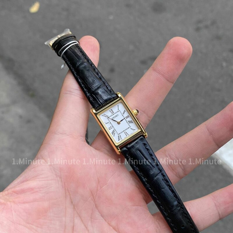 SEIKO TANK QUARTZ SWR054P1 (Gold) sở hữu thiết kế tinh tế với mặt số vuông cổ điển, cọc số La Mã sang trọng và bộ kimbnổi bật. Dây da đen cao cấp kết hợp với viền thép không gỉ mạ vàng PVD tạo nên vẻ đẹp lịch lãm, thanh lịch. Bộ máy Quartz chính xác, độ bền cao – lựa chọn hoàn hảo dành cho các bạn nữ yêu thích phong cách tối giản nhưng đẳng cấp!